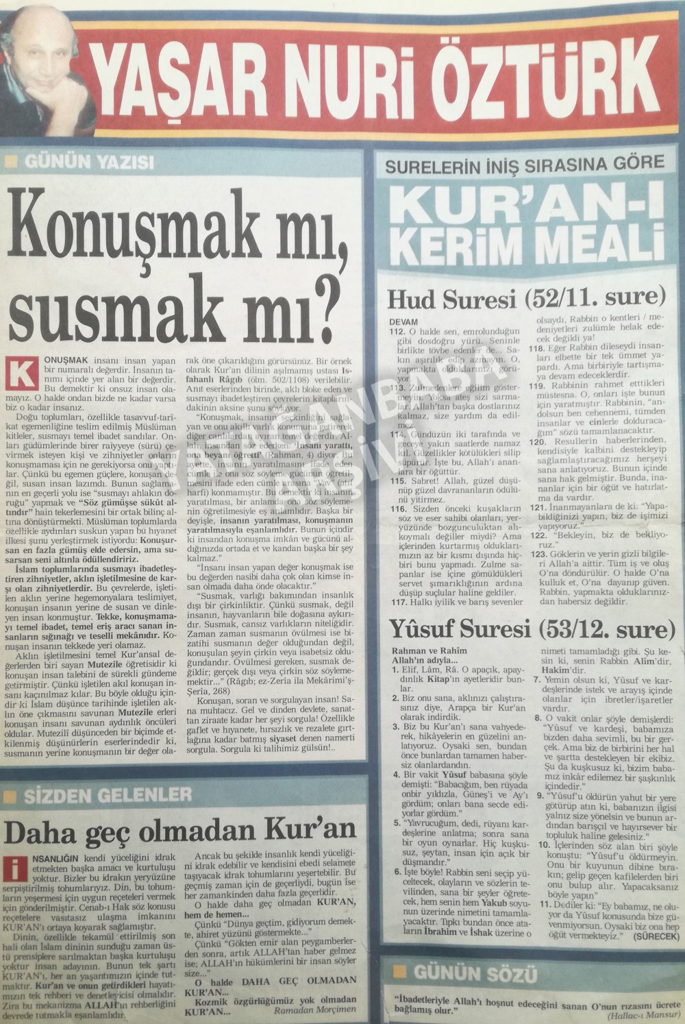 Yaşar Nuri Öztürk ARŞİVİ: Konuşmak mı Susmak mı?