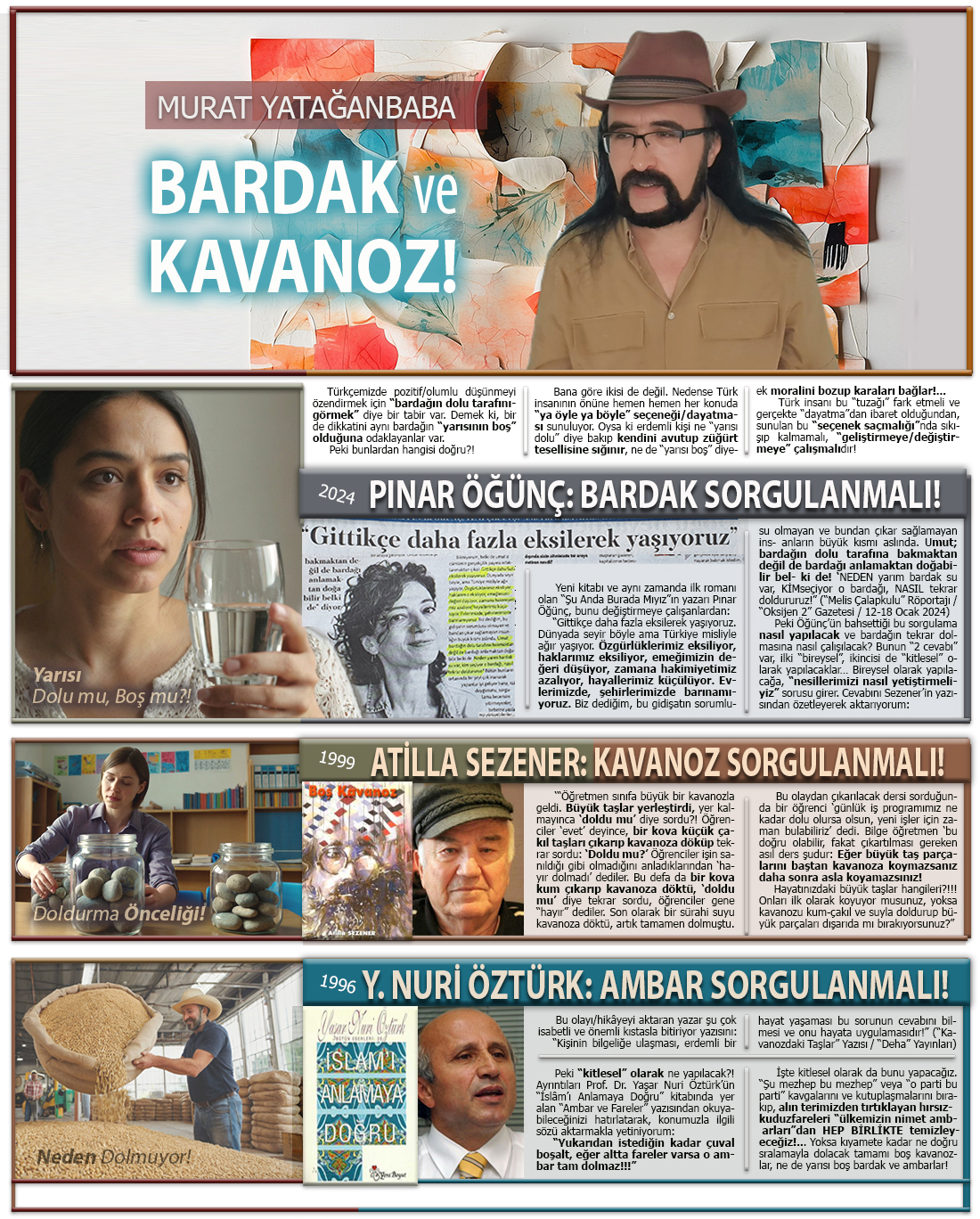 İşte kitlesel olarak da bunu yapacağız. “Şu mezhep bu mezhep” veya “o parti bu parti” kavgalarını ve kutuplaşmalarını bırakıp, alın terimizden tırtıklayan hırsız-kuduz fareleri “ülkemizin nimet ambarları”dan HEP BİRLİKTE temizleyeceğiz!… Yoksa kıyamete kadar ne doğru sıralamayla dolacak tamamı boş kavanozlar, ne de yarısı boş bardak ve ambarlar!