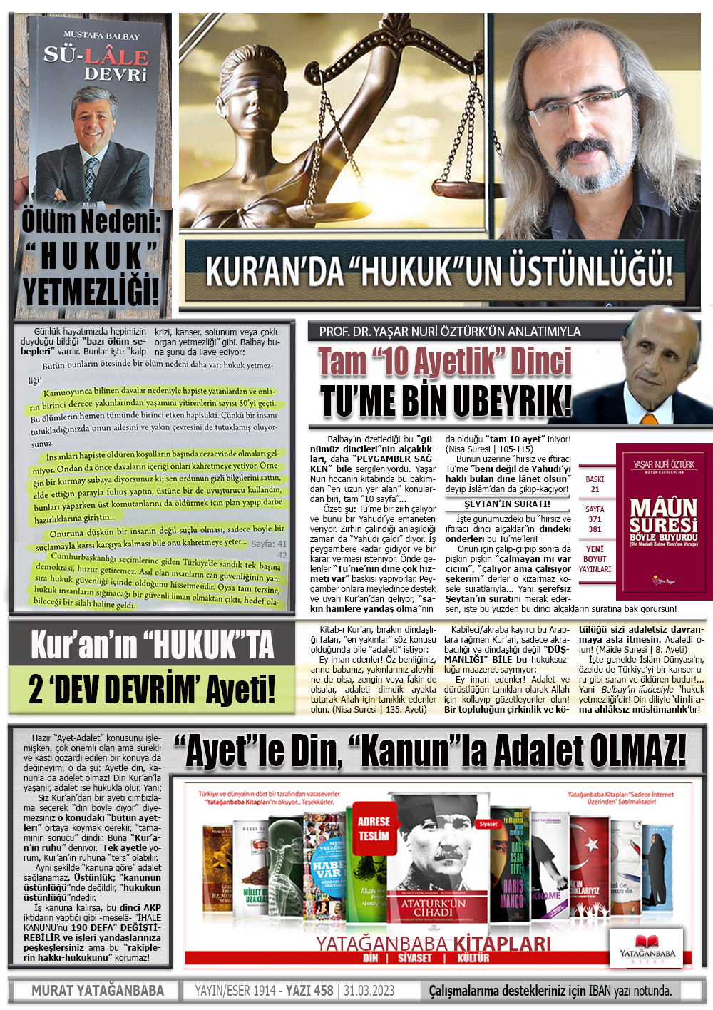 “AYET”LE DİN, “KANUN”LA HUKUK OLMAZ!