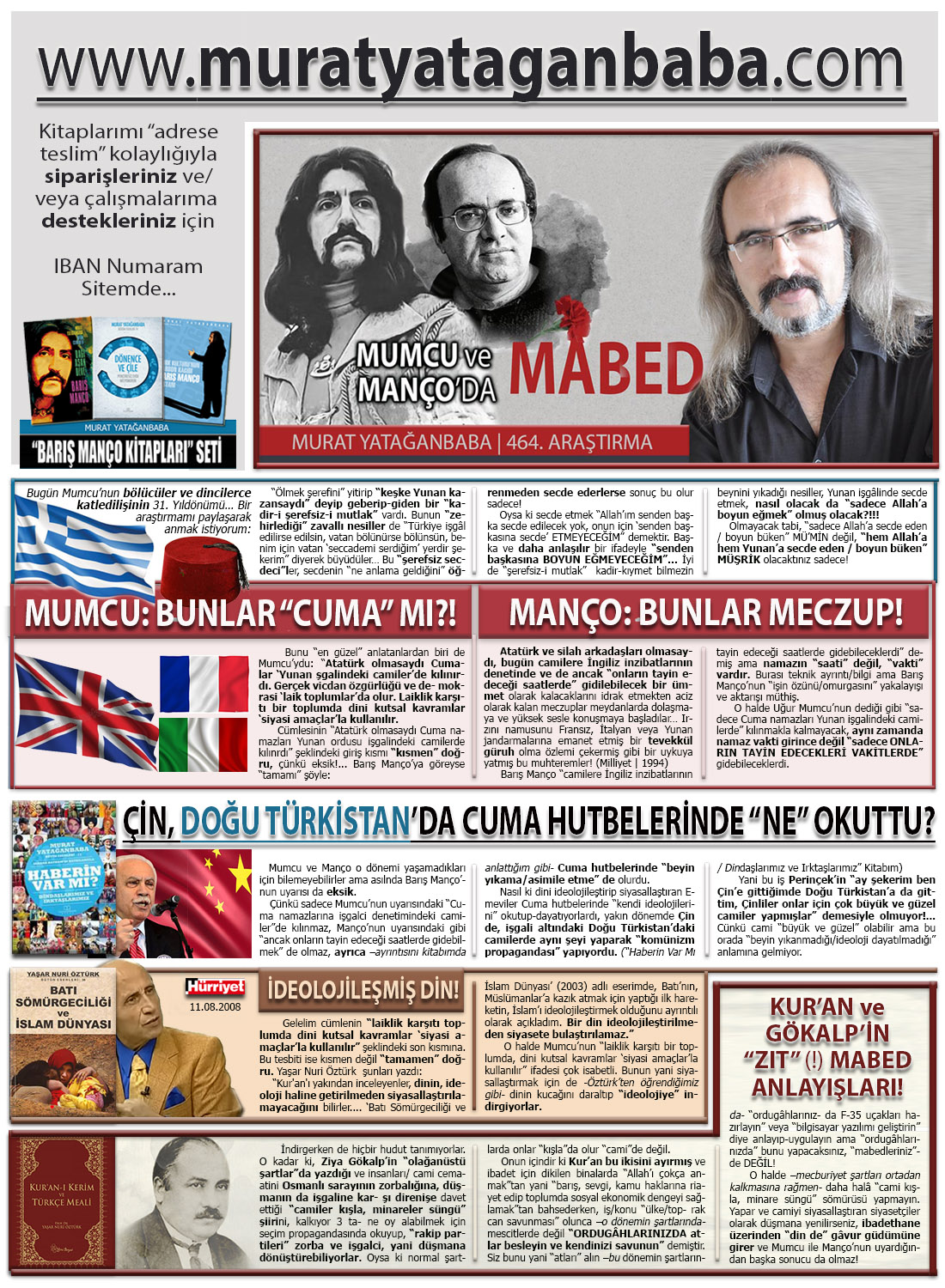 Mumcu ve Manço o dönemi yaşamadıkları için bilemeyebilirler ama asılnda Barış Manço’nun uyarısı da eksik. Çünkü sadece Mumcu’nun uyarısındaki “Cuma namazlarına işgalci denetimindeki camiler”de kılınmaz, Manço’nun uyarısındaki gibi “ancak onların tayin edeceği saatlerde gidebilmek” de olmaz, ayrıca –ayrıntısını kitabımda anlattığım gibi- Cuma hutbelerinde “beyin yıkama/asimile etme” de olurdu.