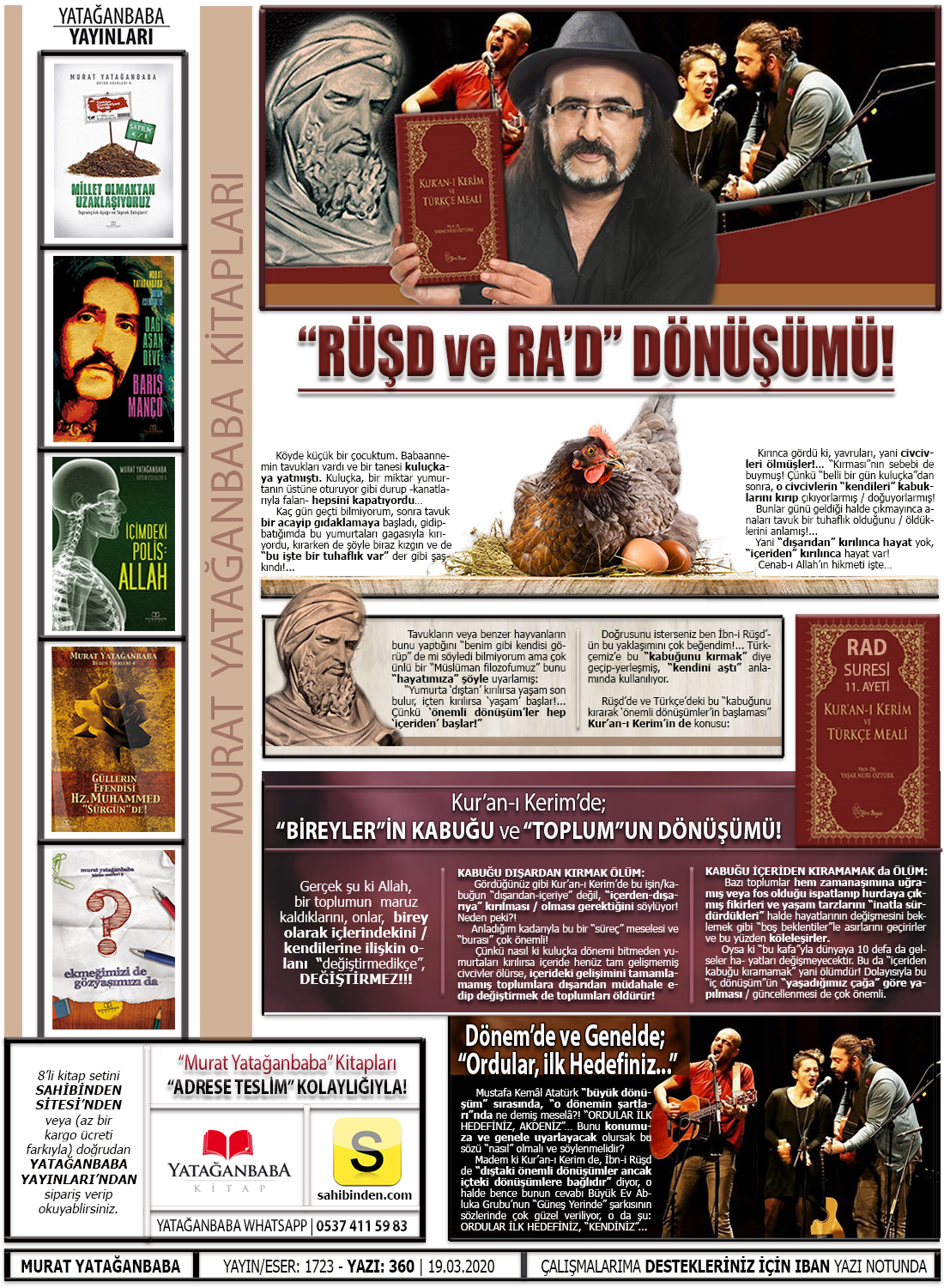 İsterseniz “yayınlamaya çalıştığım yeni kitaplarımın basımı”na ve de “internet programlarımın/videolarımın çekim-kurgu-montaj ve ekipman eksiği”ne, kısacası ÇALIŞMALARIMA “doğrudan destek” de olabilirsiniz. Banka IBAN Numaram için tıklayın.